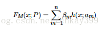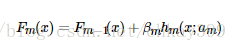 其中h(x; am)是一系列的弱学习器,am是该学习器训练得到的最优参数,βm是对应的弱学习器在强学习器中所占比例的系数。向前分步是指本轮得到的学习器是在上一轮学习器的基础上迭代训练得到的,可以表示为: