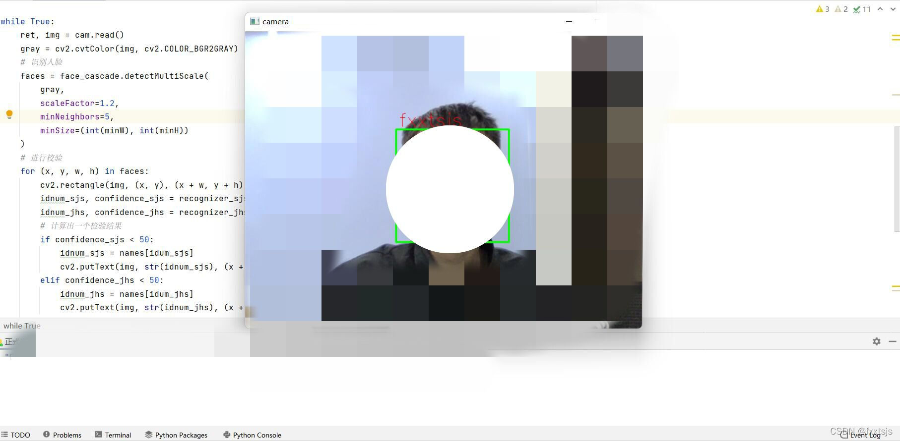 本篇文章是使用python通过调用电脑摄像头实时检测摄像头画面识别画面中的人脸