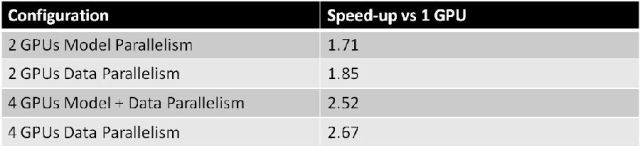 图4:CNN GPU框架对Hinton的网络[2]在ImageNet 2012的并行加速性能