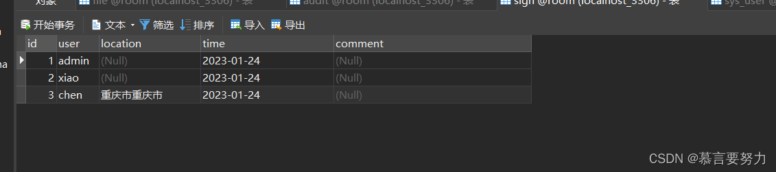 `time` varchar(255) COLLATE utf8mb4_unicode_ci DEFAULT NULL COMMENT '打卡时间',