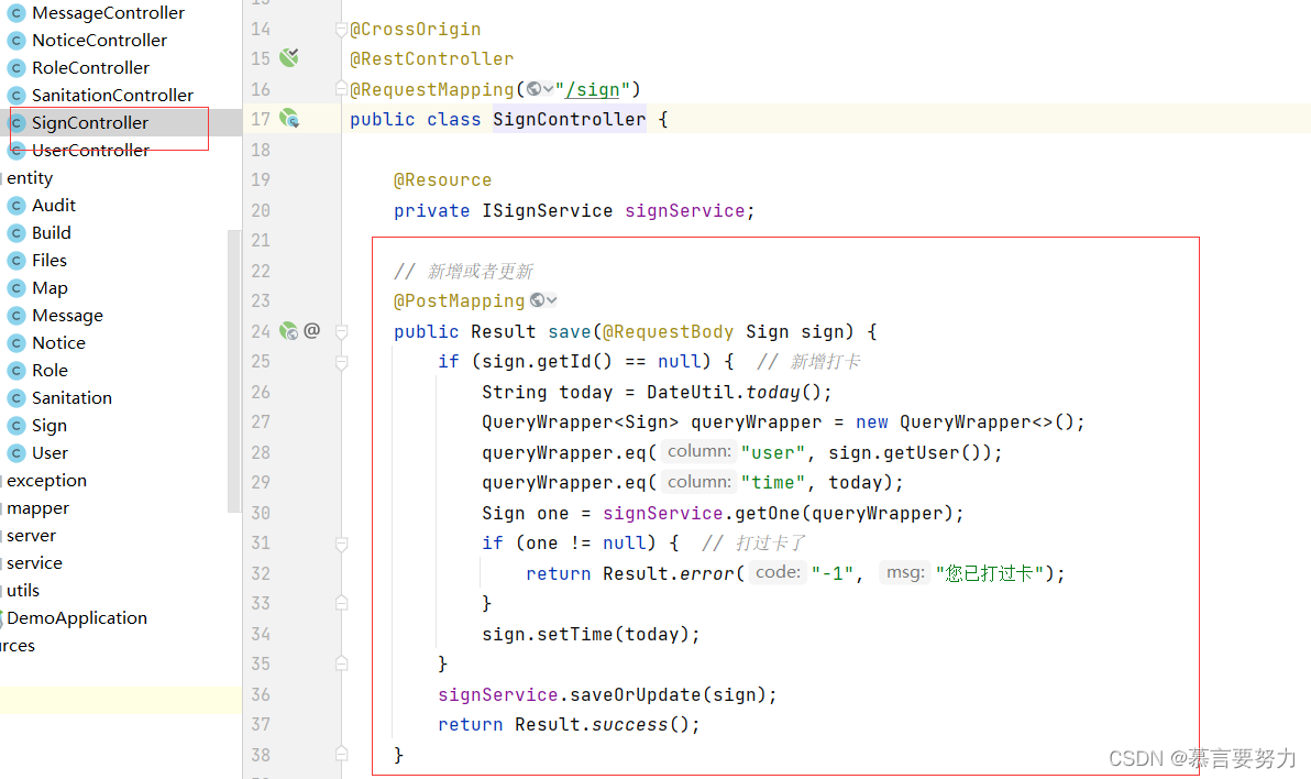 return Result.success(signService.page(new Page<>(pageNum, pageSize), queryWrapper));