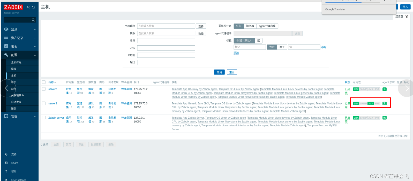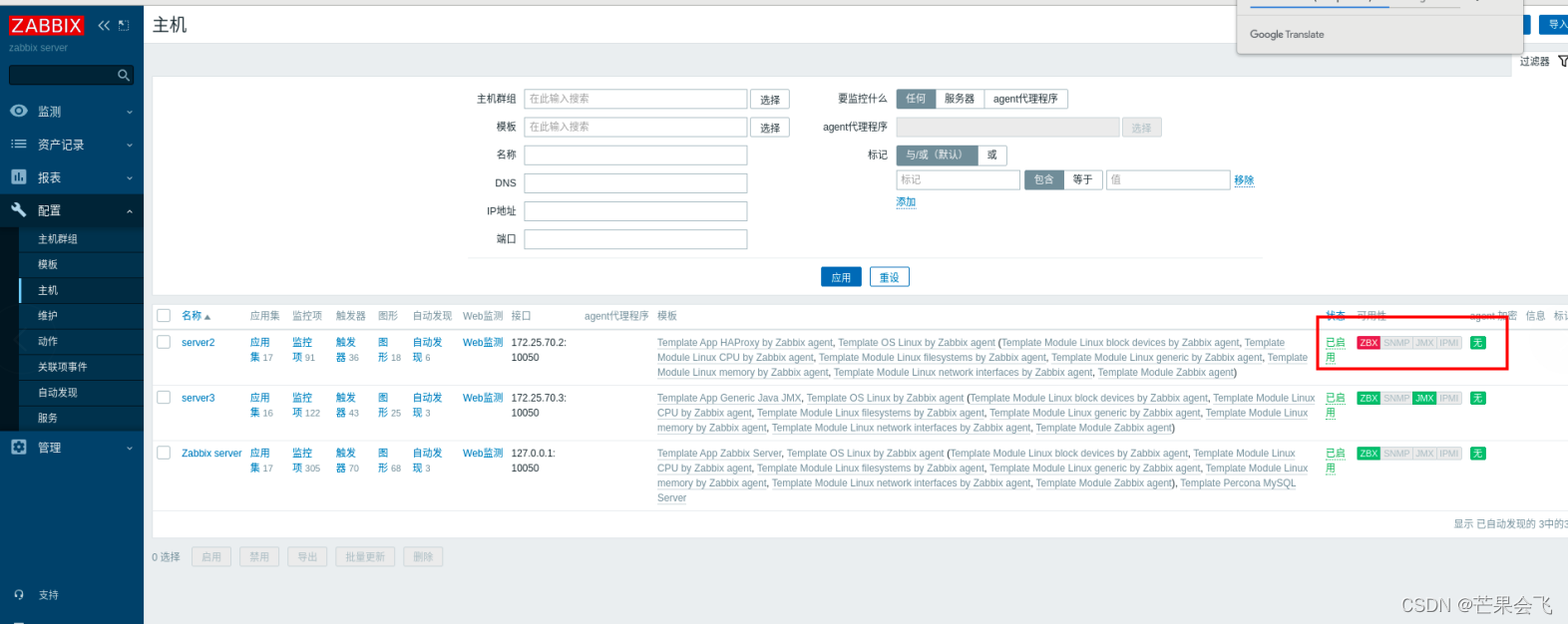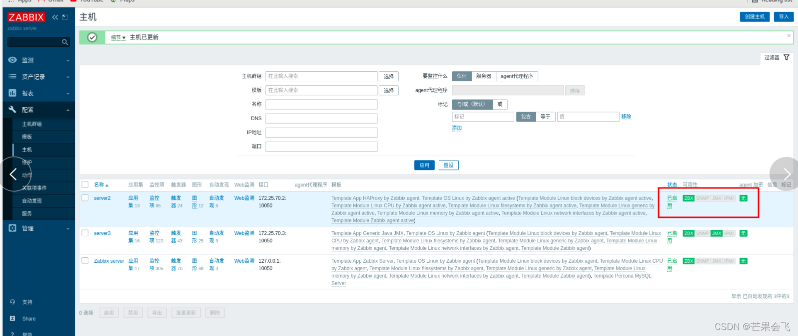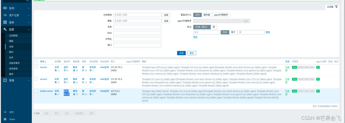 主机(目前server3的ZBX由红色变绿色,)