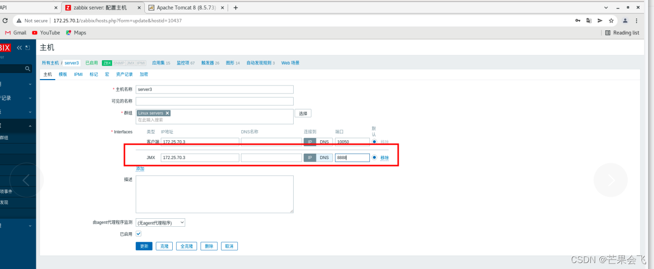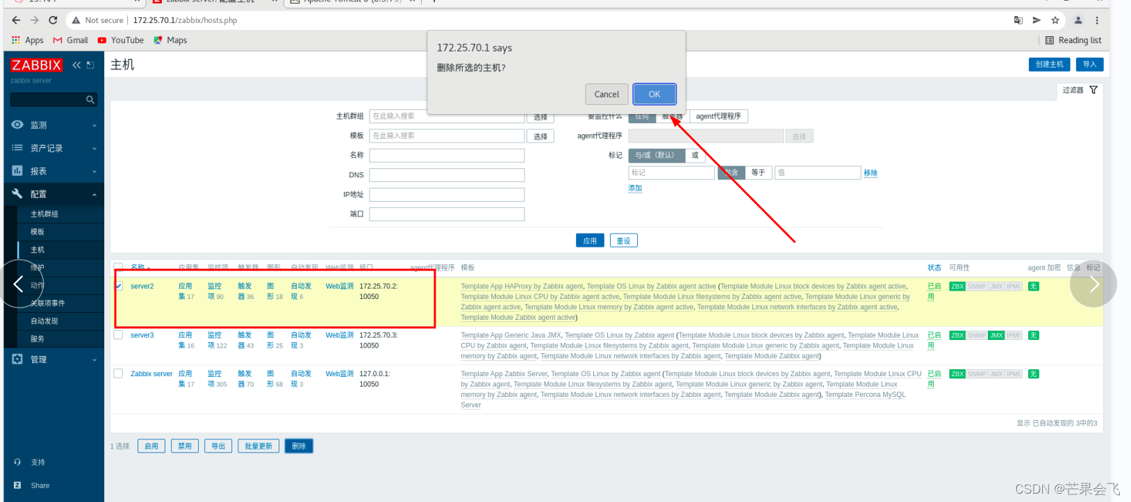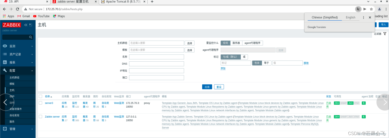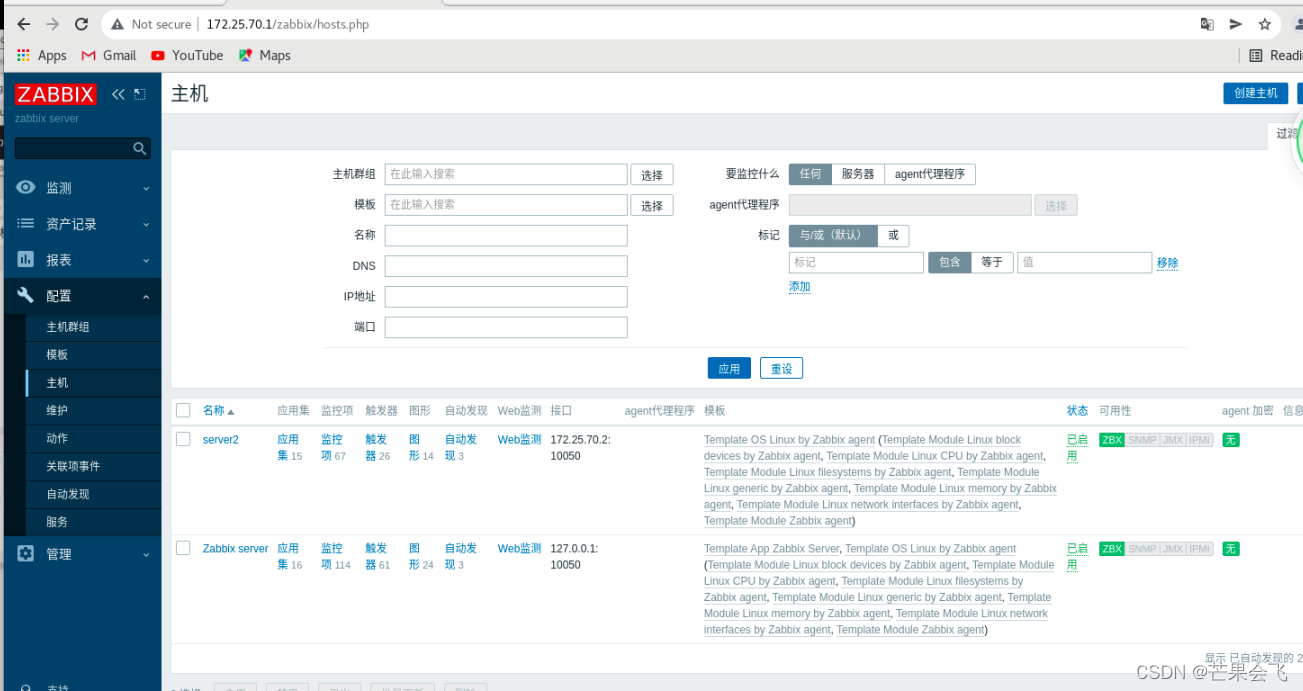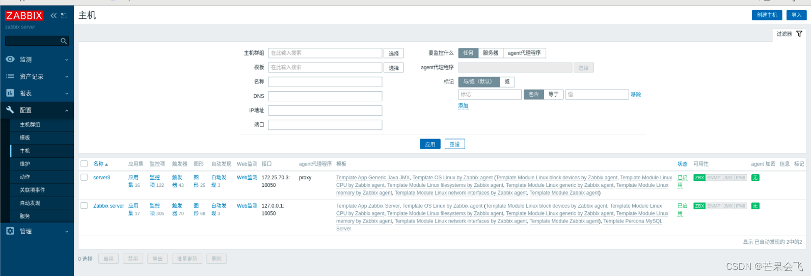 主机(目前server3的ZBX由红色变绿色,)