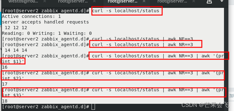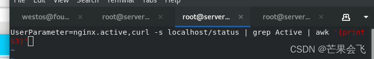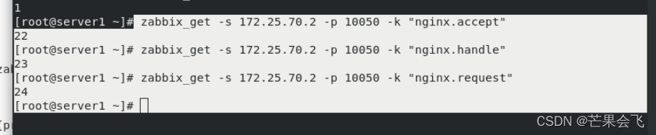 zabbix_get -s 172.25.70.2 -p 10050 -k "nginx.active"