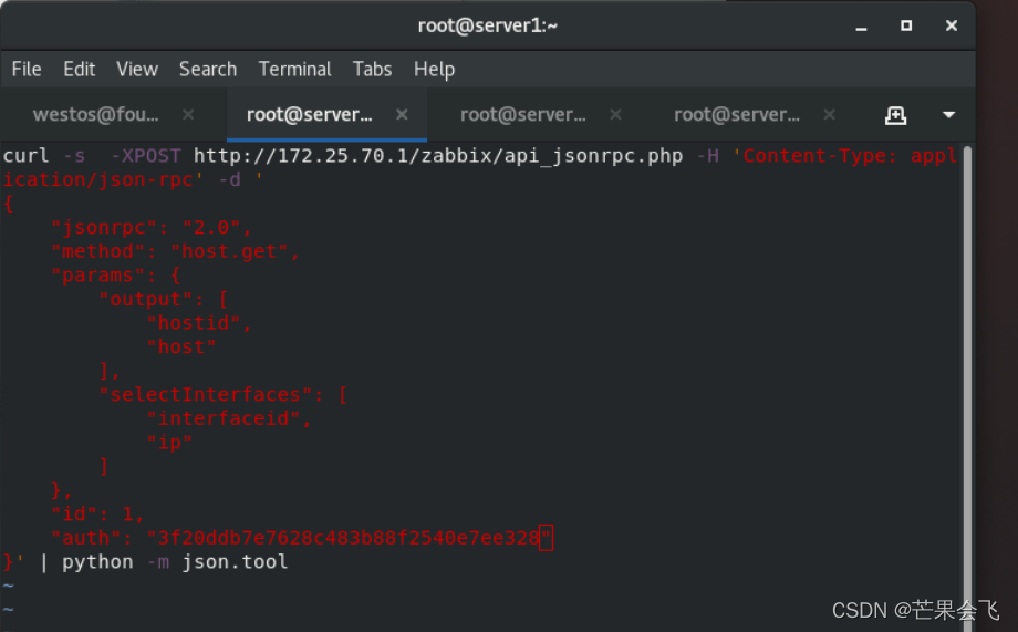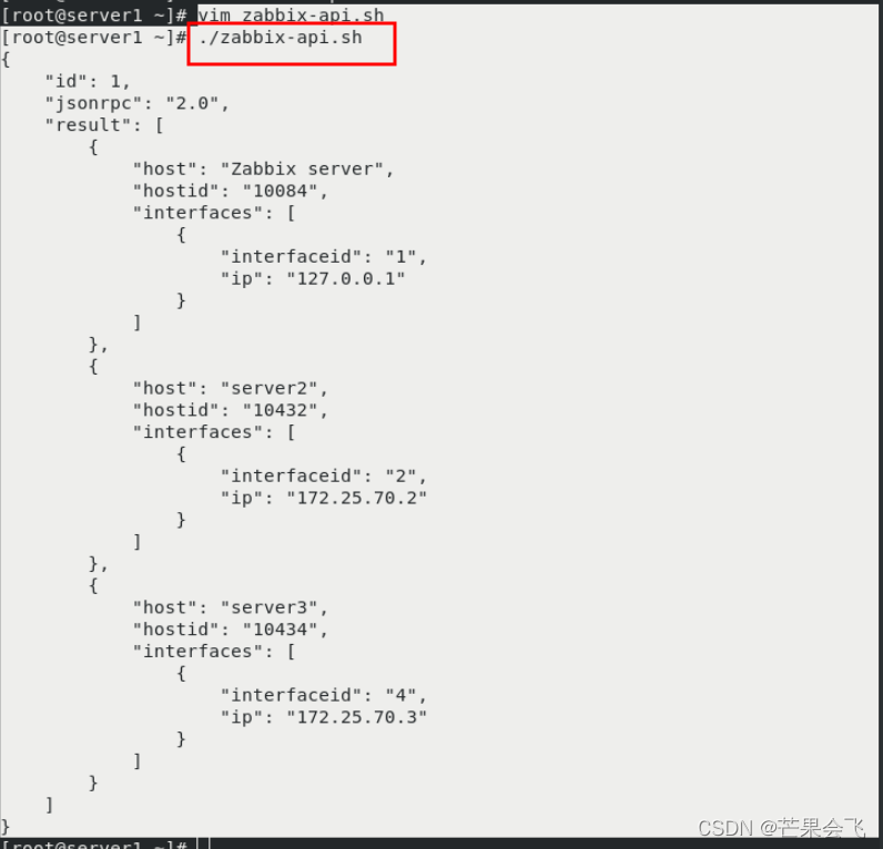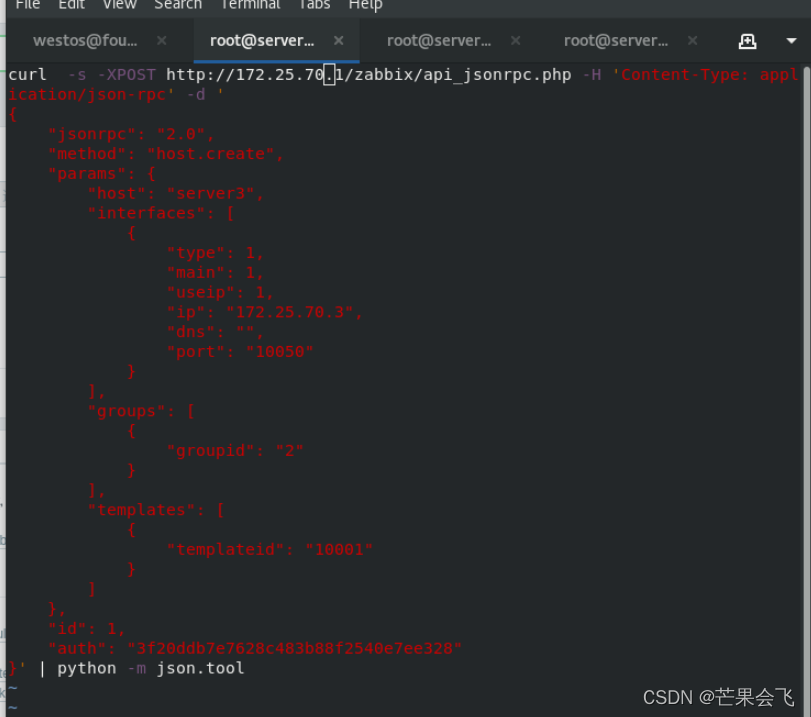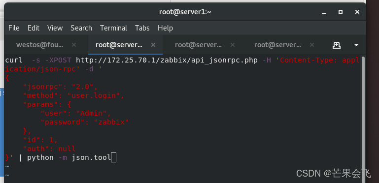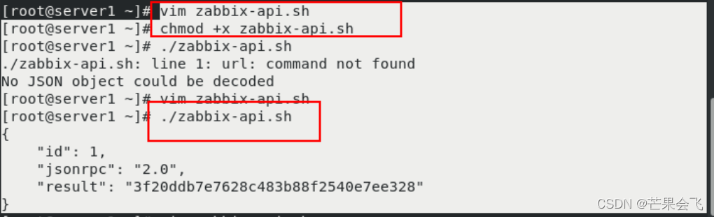 步骤参考官方原文:https://www.zabbix.com/documentation/5.0/zh/manual/apiAPI验证:【在访问Zabbix中的任何数据之前,你需要登录并获取身份验证令牌。这可以使用该 user.login 方法完成。让我们假设你想要以标准Zabbix Admin用户身份登录。然后,你的JSON请求将如下所示:】server1:vim zabbix-api.shc