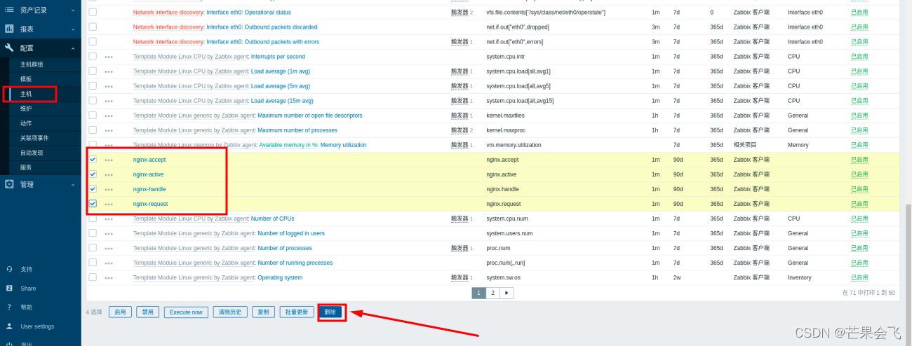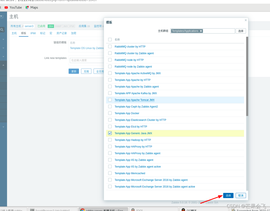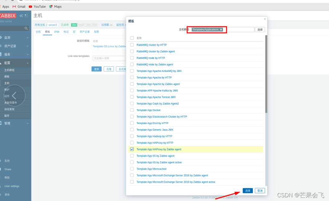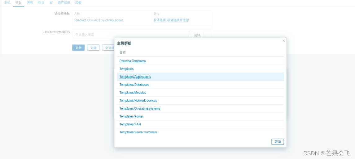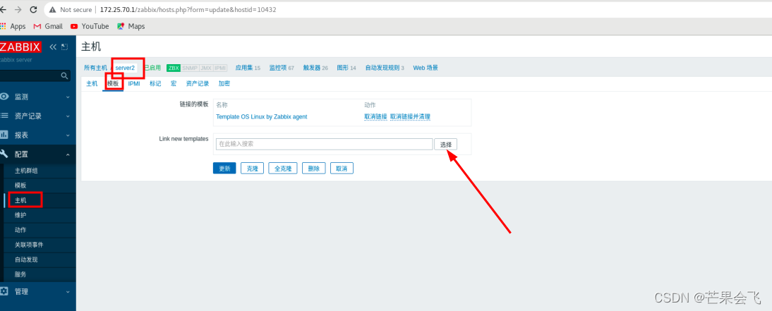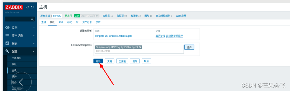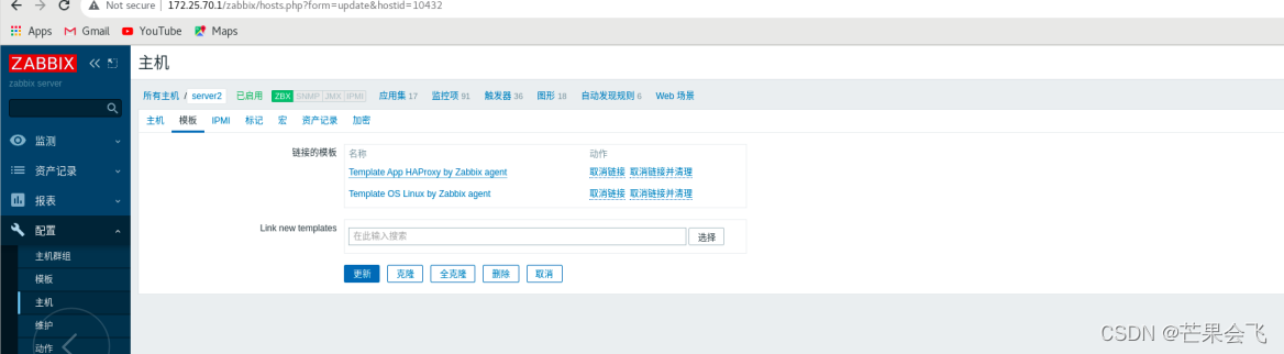 配置--主机--模板--选择操作系统(倒数第4个)--选择第6个--取消带OS的链接并清理--更新(替换之后server2的客户端就变成了主动式的)