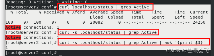 curl -s localhost/status | grep Active | awk '{print $3}'