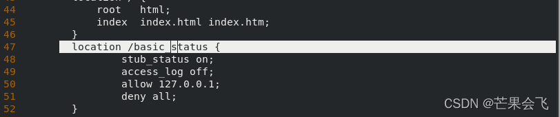 47行左右添加: location /status {