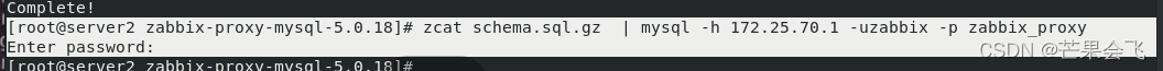 zcat schema.sql.gz | mysql -h 172.25.70.1 -uzabbix -p zabbix_proxy
