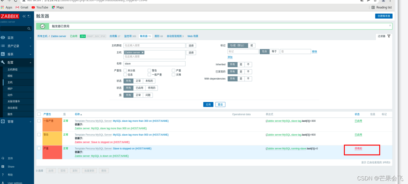 此时mysql没有主从一致要关闭slave监听端口的触发器