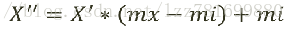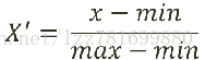 注:作用于每一列,max为一列的最大值,min为一列的最小值,那么X'' 为最终结果,mx,mi分别为指定区间值默认mx为1,mi为0