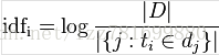 IDF:inverse document frequency 逆文档频率 是一个词语普遍重要性的度量。某一特定词语的IDF,可以由总文件数目除以包含该词语之文件的数目,再将得到的商取对数得到