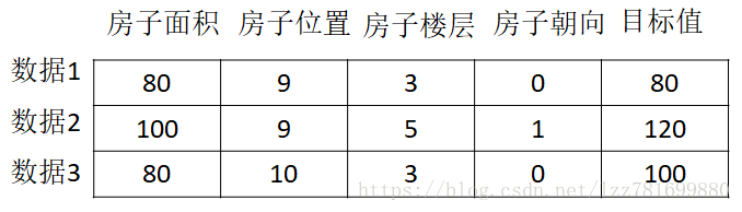 特征值:要收集的数据,如房子面积 位置 楼层 朝向等