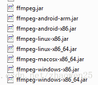 代码写好后不是立马就能运行的,由于这个工具用的是jni,所以我们要把DLL文件放在java.library.path里,我是直接把ffmpeg-windows-x86.jar和opencv-windows-x86.jar里的DLL文件直接解压放在C:\Program Files\Java\jdk1.7.0_60\bin里的,对于64位和linux的环境,则要用javacv-bin文件夹里其他的平台jar: