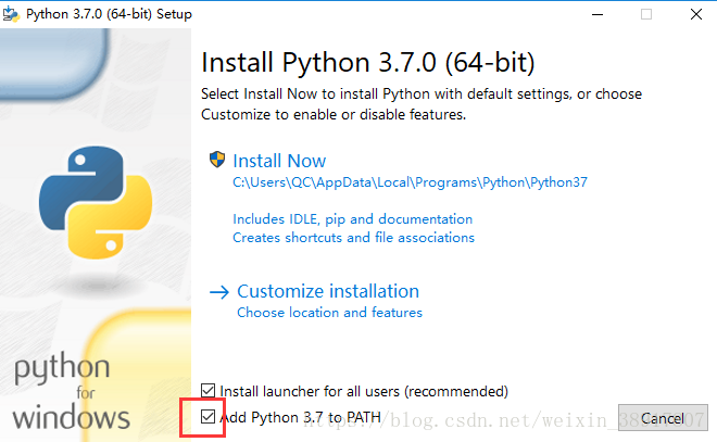 2.勾选Add Python 3.7 to Path ,可以直接省略自己添加环境变量