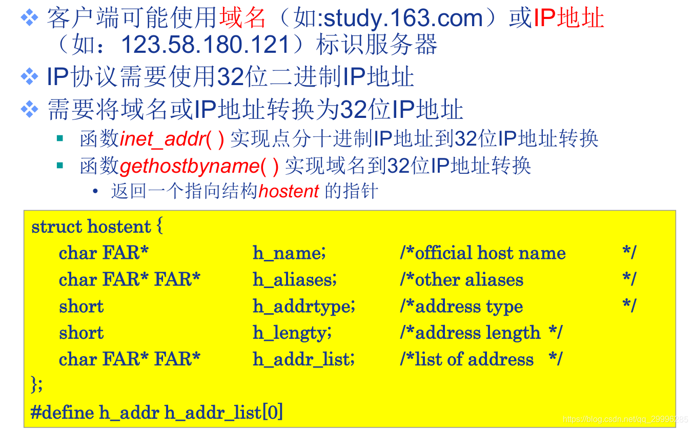 标识通信端点(对外)——IP地址+端口号——这是针对TCP/IP的