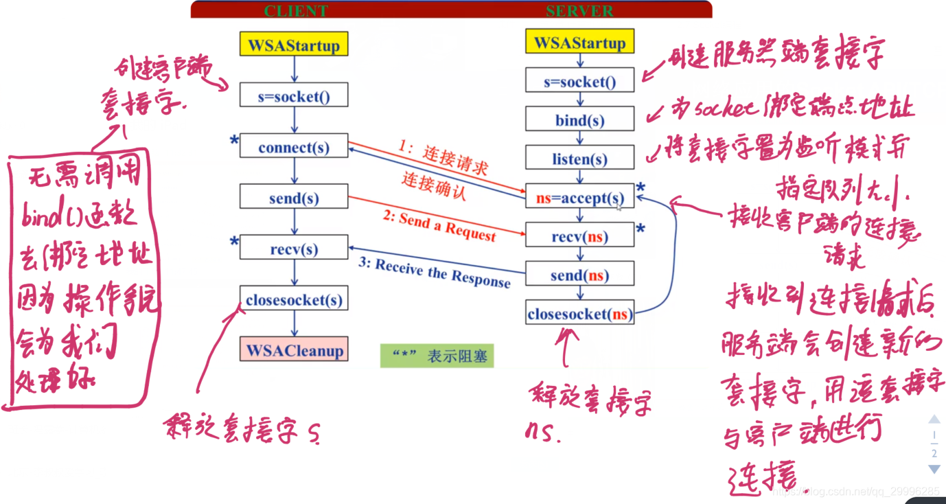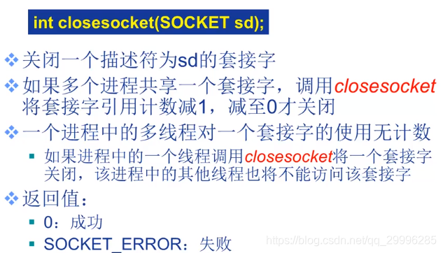 2、closesocket函数——关闭连接(Unix中的函数名是close,没有socket,记住)