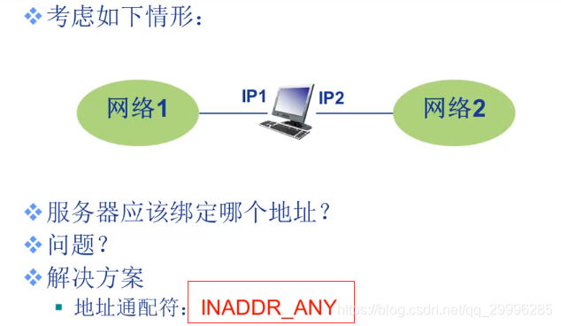 如果服务器有多个网卡,也就是有多个IP地址,该如何处理,绑定哪一个IP地址呢——使用地址IP体制通配符 INADDR_ANY