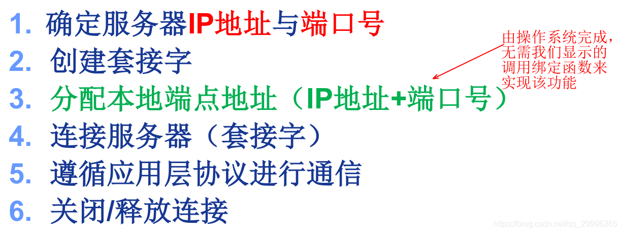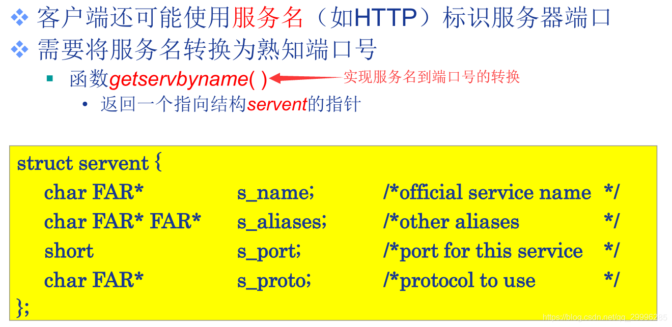 当客户端创建套接字希望与服务端进行通信时,通过端口号来分辨与服务端的哪一个应用进程进行通信(为什么不通过IP地址进行分辨,因为服务端主机上有多个应用进程在运行,每个应用进程可能会使用多个套接字。单单通过IP地址不足以分辨出是与哪一个套接字进行通信)
