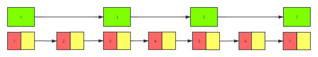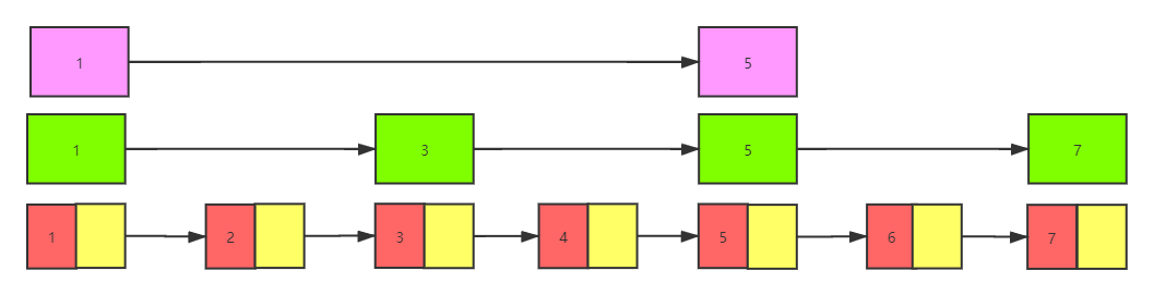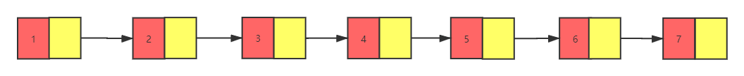 先看下图有序单向链表,存放了1,2,3,4,5,6,7这7个元素。