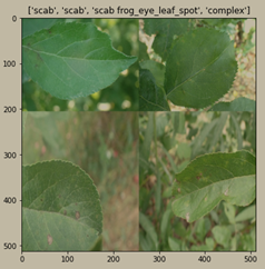 如下图所示是 scab 和 frog_eye_leaf_spot两种单标签疾病的叶子cutmix后的得到scab frog_eye_leaf_spot 多标签的数据。