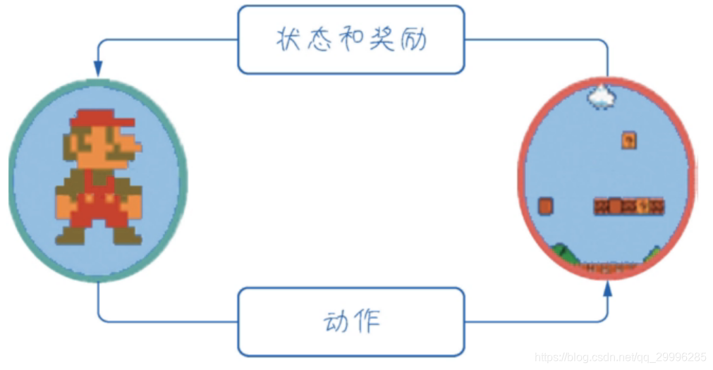 强化学习中,智能体通过奖励、状态以及动作与环境互动