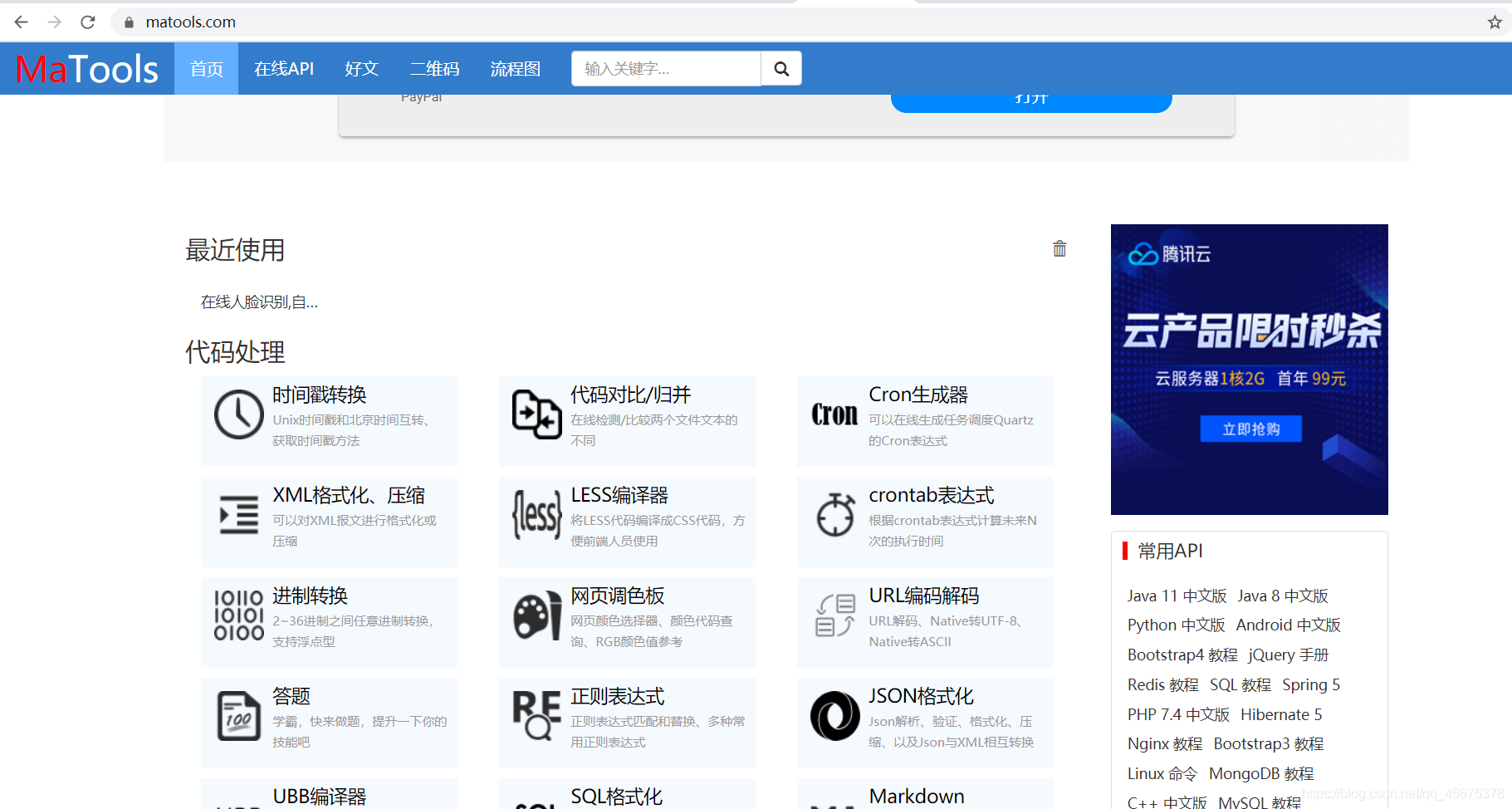 https://www.matools.com/api/java8 重磅推荐!在线查询各种API中文文档,各种功能,直接上图