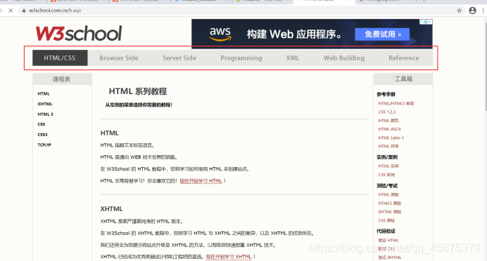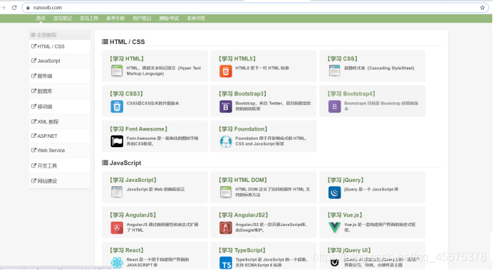 https://www.w3school.com.cn/ 网上最大的 WEB 开发者资源,其中包括全面的教程、完善的参考手册以及庞大的代码库