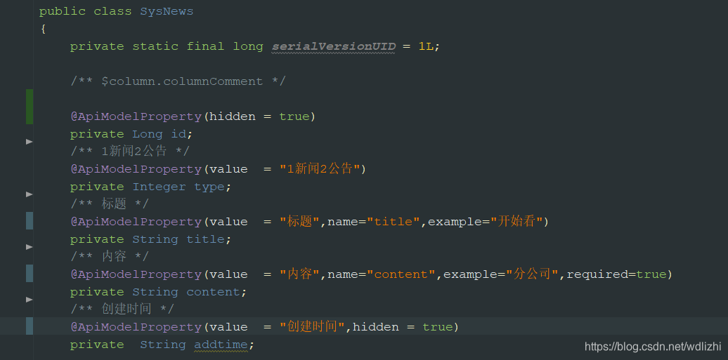 | 描述返回对象的意义 | @ApiModel | 用在返回对象类上 |