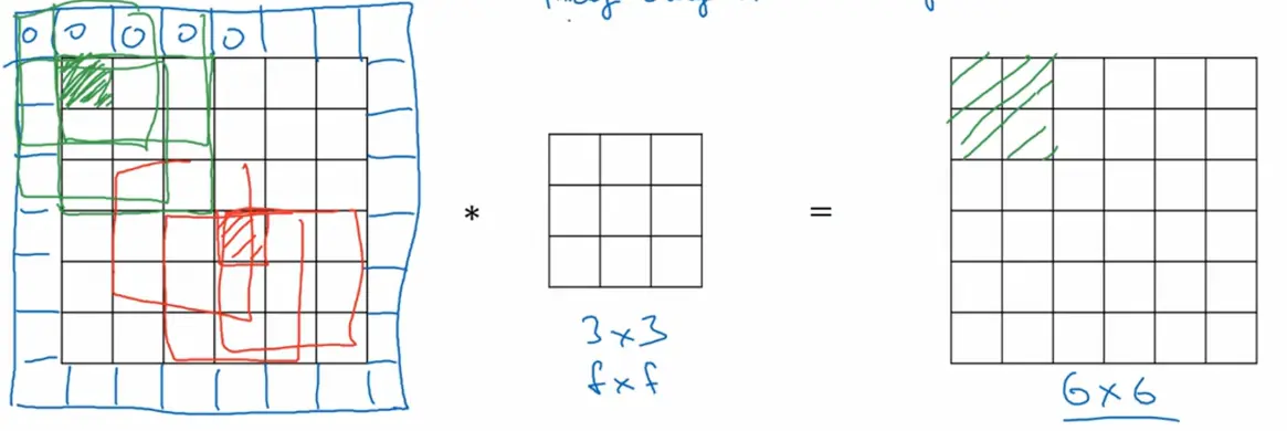 过滤器有个缺点就是会把矩阵的大小减少,使用 Padding,将图像周边都填充0,就可以解决这个问题: