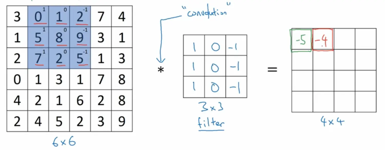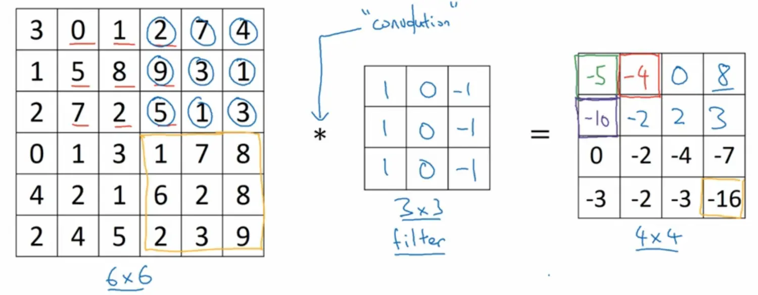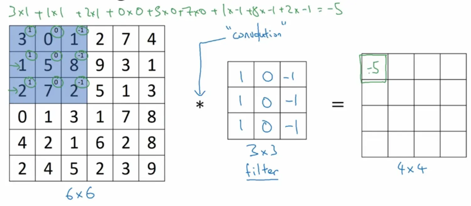 在CNN中,我们会把过滤器中的各个权值作为参数来训练。这样使得过滤器不仅仅能检测竖直或者水平的边缘特征,而且可以检测到角度旋转后的复杂边缘。