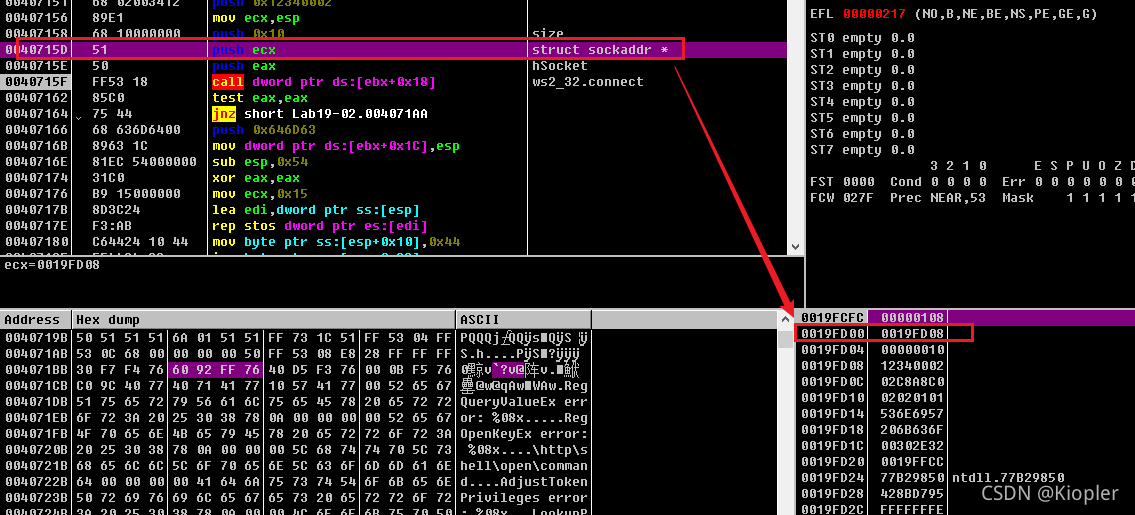 直接执行了网络行为,我们来观测一下这个connect函数。connect参数内会有服务器的IP地址以及端口号