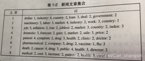 聚类分析:旨在发现紧密相关的观测值簇群,使得与属于不同簇的观测值相比,属于同一簇的观测值之间尽可能相似。比如文本聚类的主要思想就是如此,如下是新闻文章的集合,把每篇文章表示成词-频率对的集合。前四篇文章作为一个簇,对应新闻经济;后四篇文章作为第二个簇,对应卫生保健。聚类算法就是能够根据文章中出现的词的相似性,识别这两个簇。