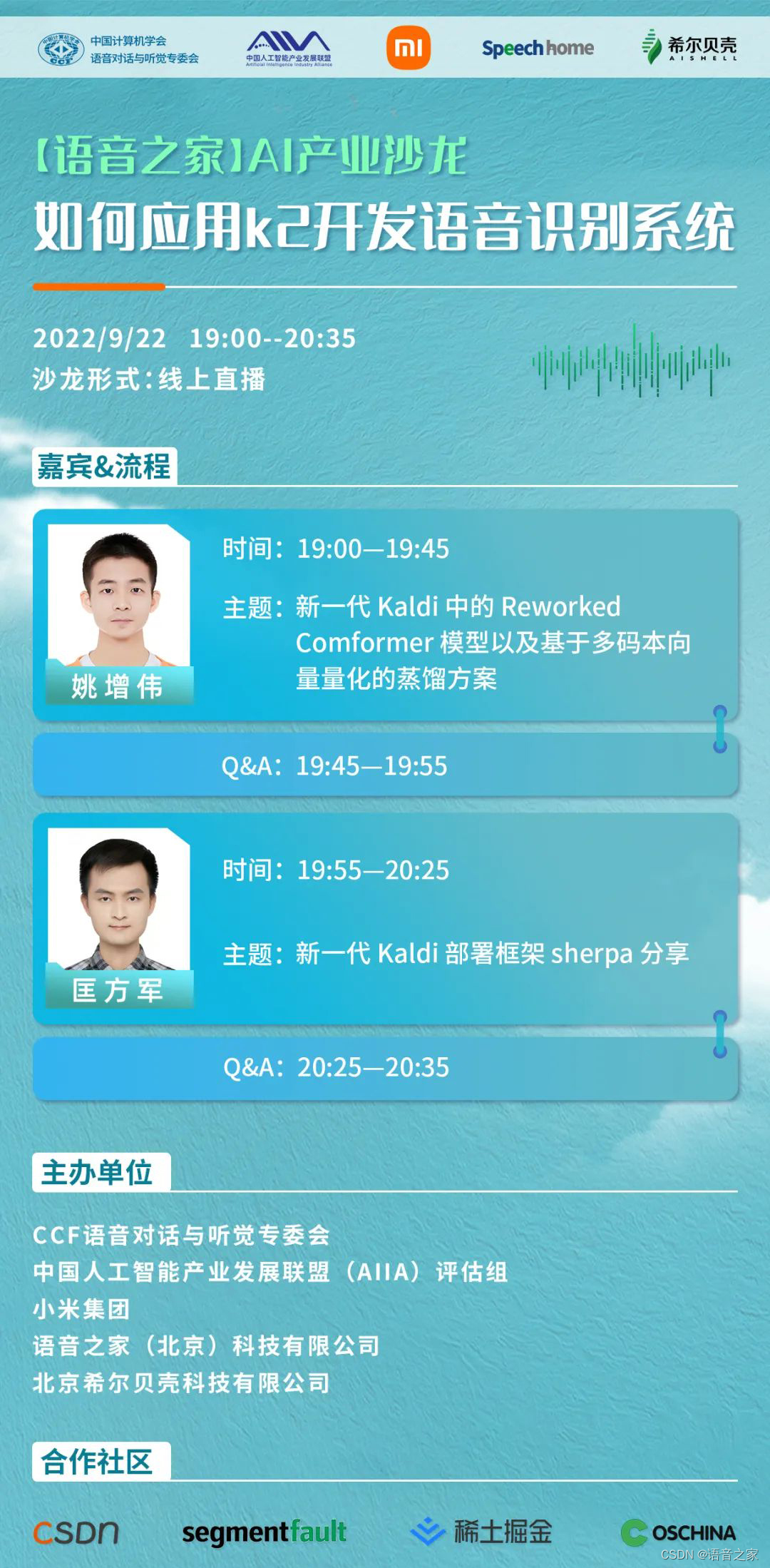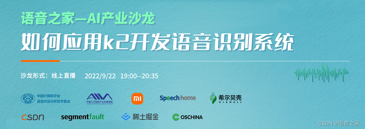 【语音之家】AI产业沙龙—如何应用k2开发语音识别系统-CSDN直播