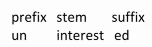 传统情况下如果我们看到复杂的词,例如uninterested,会认为它是由更小单元的词素(词素是构成词的要素。是语言中最小单位的音义结合体)组成的。